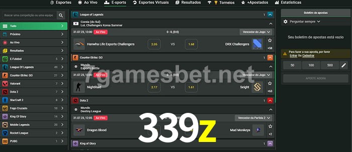 A aposta 339z oferece aos jogadores a experiência mais conveniente de apostas em eSports!
